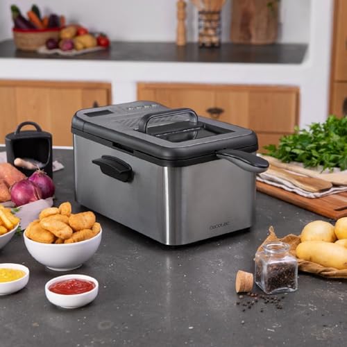 Cecotec Ölfritteuse 3,2 Liter Cleanfry Luxury 3000 Dark. 2400 W, Schwarz getönter Edelstahl, 5 voreingestellte Programme, OilClean Filter