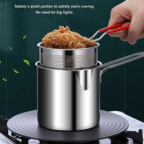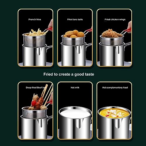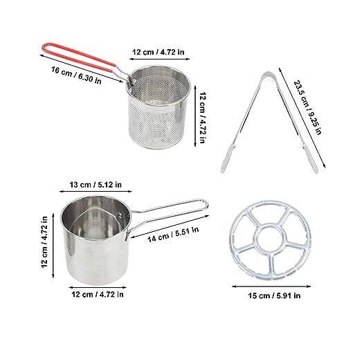 Fritteusentopf aus Edelstahl mit Siebkorb, Japanische Tempura-Fritteuse, Fritteuse, Frittiertopf Zum Frittieren von Fisch, Garnelen (5-teiliges Set: Brattopf + Siebkorb)