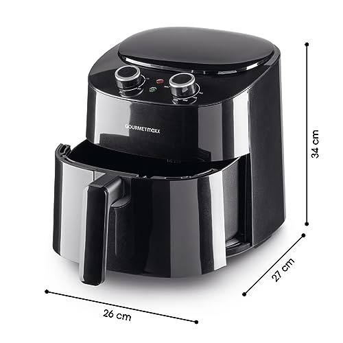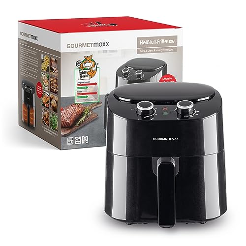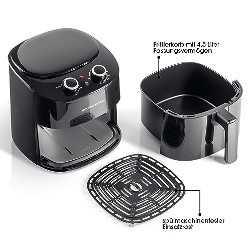GOURMETmaxx Heißluftfritteuse 4,5L | Airfryer mit 8 Programmen, ideal zum besonders fettarmen Garen, Grillen oder Backen ohne Öl | Mit LCD-Display, Timer- & Stay-On-Funktion | 1400W [Schwarz]