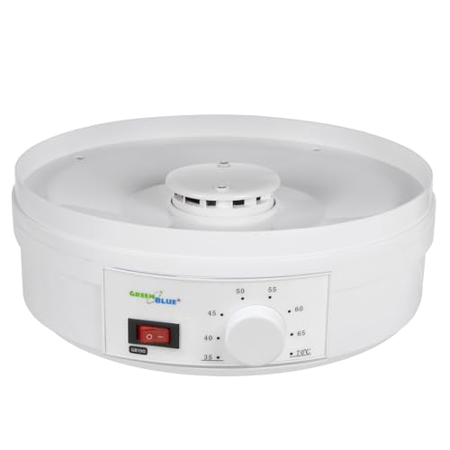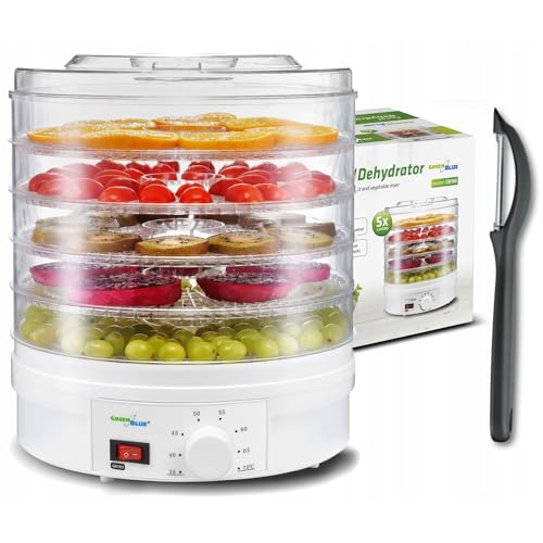 Green Blue GB190 Dörrautomat mit Temperaturregler 35-70° Nahrungsmitteltrockner für Pilze, Gemüse und Früchte 5 Platten 4,5cm 250W (Dörrautomat + Universalschäler)