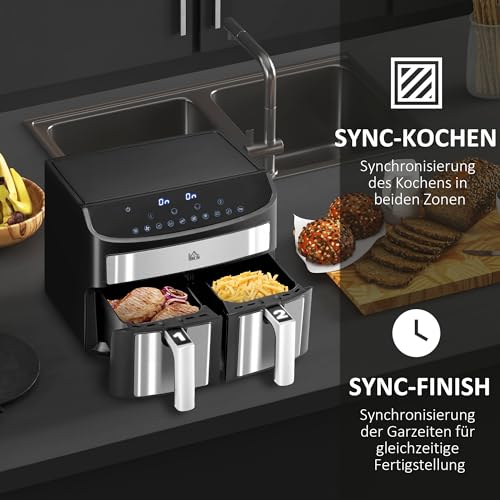 Zwei 4-Liter Antihaft-Körbe: Diese Kopie-Heißluftfritteuse eignet sich hervorragend für individuelles oder Familienkochen. Verwenden Sie die Körbe separat oder zusammen, gebunden davon, was Sie kochen möchten. Darüber hinaus können die Einstellungen von Zone 2 mit Zone 1 synchronisiert werden, sodass Sie mehr von derselben Speise oder verschiedene Gerichte mit derselben Bildnis, Temperatur und Zeit zubereiten können