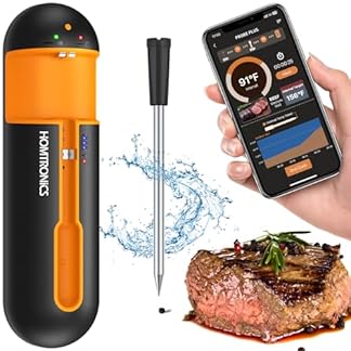 Homtronics Fleischthermometer Kabellos, [Update-Version] [150M Reichweite] Grillthermometer Bluetooth, IP67 Wiederaufladbares Smart Meat Thermometer, mit APP für Backofen Grill Pfanne Fritteuse