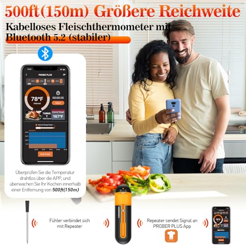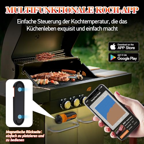📳【Android/iOS/HarmonyOS+ Kompatibel mit Geführtem Kochsystem】Überwachen Sie den Garvorgang mit der kostenlosen App für iOS/Android/HarmonyOS-Smartphones und Tablets. Grill thermometer kabellos zum Geilen Anpassbare Temperaturen/Garzeiten garantieren perfekte und gleichbleibende Ergebnisse. Kreieren Sie mit Leichtigkeit köstliche Mahlzeiten. Wenn Sie Kochanweisungen benötigen, verwenden Sie diese in der App, um leckeres Essen zu kochen und das Leben zu genießen.