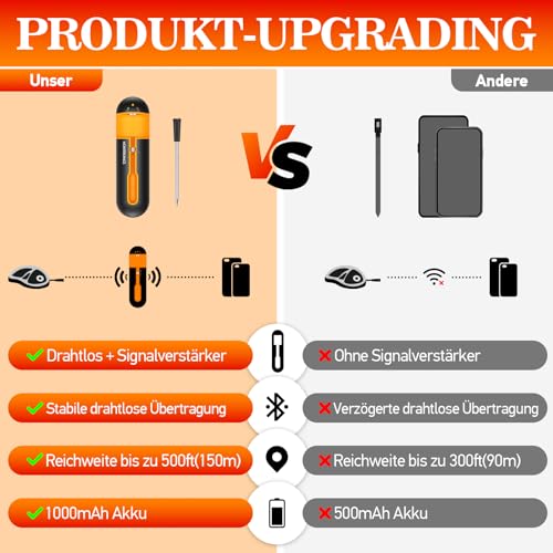⏰【Intelligenter Alarm & Countdown-Abbildung】Fleischthermometer bluetooth kann Ihren Grill/Ofen aus der Ferne überwachen und Echtzeit-Warnungen mit der App erhalten. Sie können nicht im Unterschied dazu die vom USDA empfohlene voreingestellte Temperatur weitergeben, sondern auch benutzerdefinierte Warnungen/Benachrichtigungen basierend auf Temperatur und/oder Zeit einrichten. Wenn die eingestellte Zieltemperatur erreicht ist, piepen sowohl Ihr Smartphone als auch Ihr Booster, um Sie daran zu erinnern!