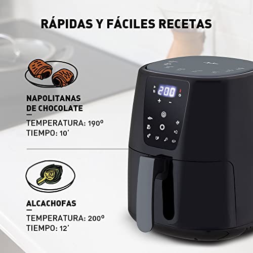 Mit dem JEFR1225 können Sie gesund frittieren, da Sie zugegeben einen Esslöffel Öl verwenden müssen. Nunmehr die Ergebnisse werden schmackhaft und knusprig sein, wenn sie gesund gegart sind.