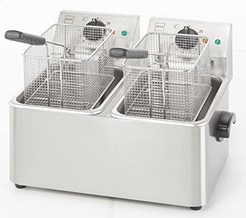 Die METRO Professional Durchschlag-Fritteuse GDF3024 hat zwei Tanks per je 4 Litern Inhalt