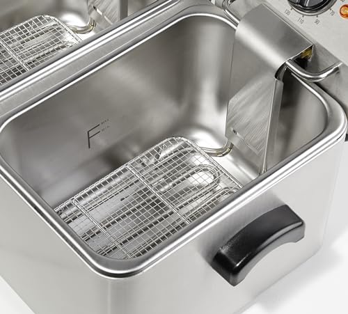 Er verfügt mit einen Frittierkorb per Kunststoffgriff, ein abnehmbares Schutzgitter anstatt das Heizelement, abnehmbare Heizkanäle des Weiteren einen Regler sowie eine Ausschilderung anstatt den Mindest- des Weiteren Höchstfettgehalt