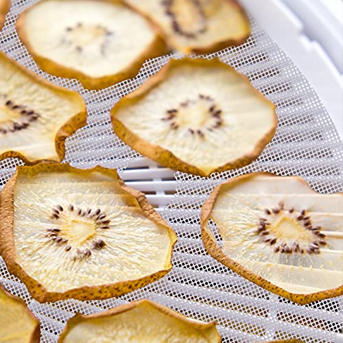 Packungsinhalt: Sie erhalten 6 Bereich weiße Lebensmittel-Frucht-Dörrfolien, 33 cm Durchmesser x 1mm Dicke, Maschenöffnungsgrößen 1,3 x 1,3 mm, können in jede gewünschte Größe und Form geschnitten werden