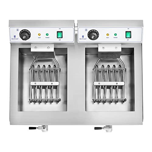 Royal Catering Doppel-Fritteuse aus Edelstahl (2 x 16 l Kapazität, 2 x 3200 Watt, Thermostat, 2 x Ablasshahn) Doppel-Elektro-Fritteuse