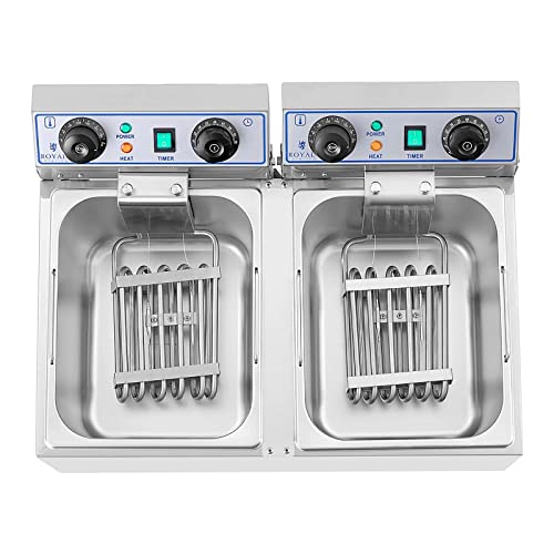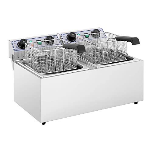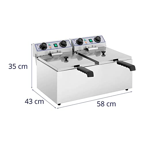 Royal Catering Fritteuse Edelstahl Doppel-Fritteuse RCTF-13DH (Kapazität 2 x 13 L, 2 x 3200 W, 230 V, 60–200 °C, Timer 60 min, inkl. 2 x Korb mit Deckel)