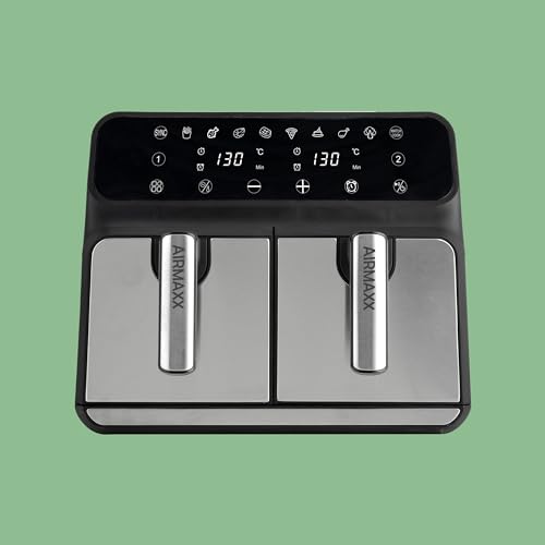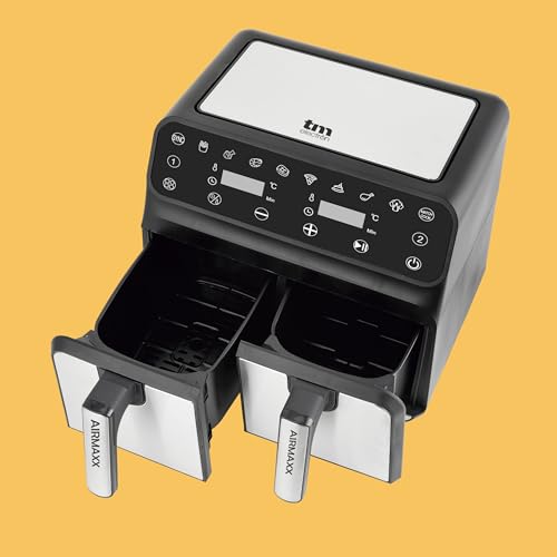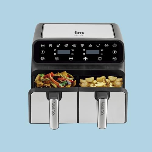 TM Electron TMPFR200 AIRMAXX Ölfreie Fritteuse mit Doppelfach, 8L Gesamtkapazität (4L+4L), SYNC- und MATCHCOOK-Funktionen, Antihaftbeschichtung, 8 Programme, Touchscreen, 1700 W